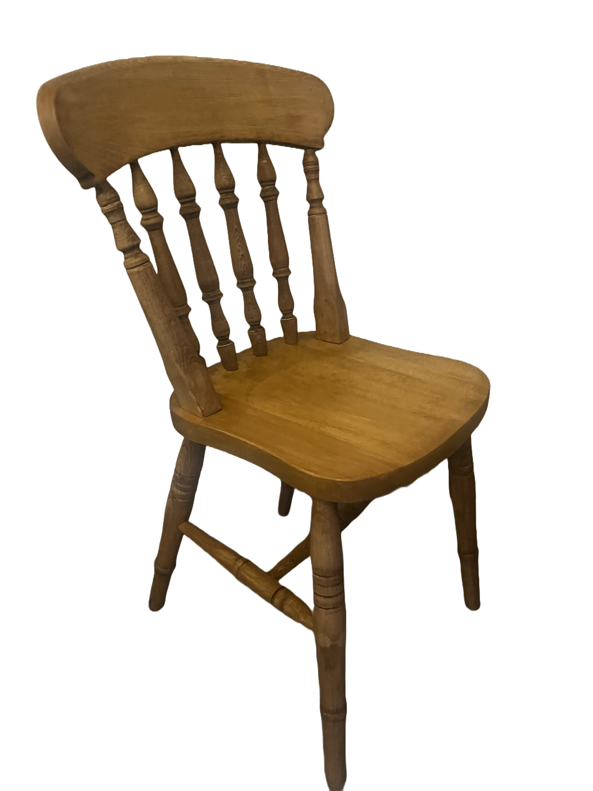 Spindle back farmhouse carver dining chairs, also available in slat back and fiddle back.